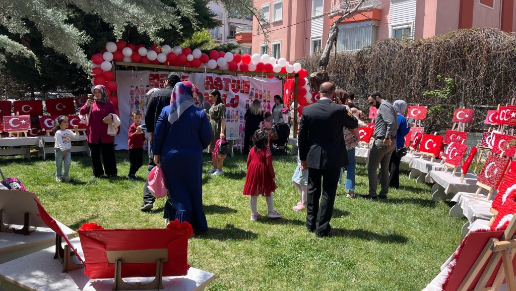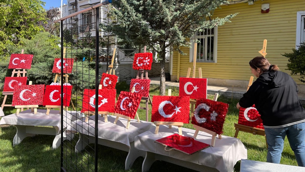 OKULUMUZDA "AİLEMLE EĞİTİM YOLCULUĞUM" PROJESİ KAPSAMINDA AİLEMLE SANAT GÜNÜ ETKİNLİKLERİNDE, VELİLERİMİZİN KATILIMIYLA FARKLI MATERYALLERLE TÜRK BAYRAKLARI TASARLANDI VE TÜM VELİLERİN KATILIMIYLA TÜRK BAYRAĞI SERGİSİ GERÇEKLEŞTİRİLDİ.HER AİLENİN KENDİ SANAT ESERİNİ OLUŞTURMASI İÇİN FIRSAT VERİLDİ.
